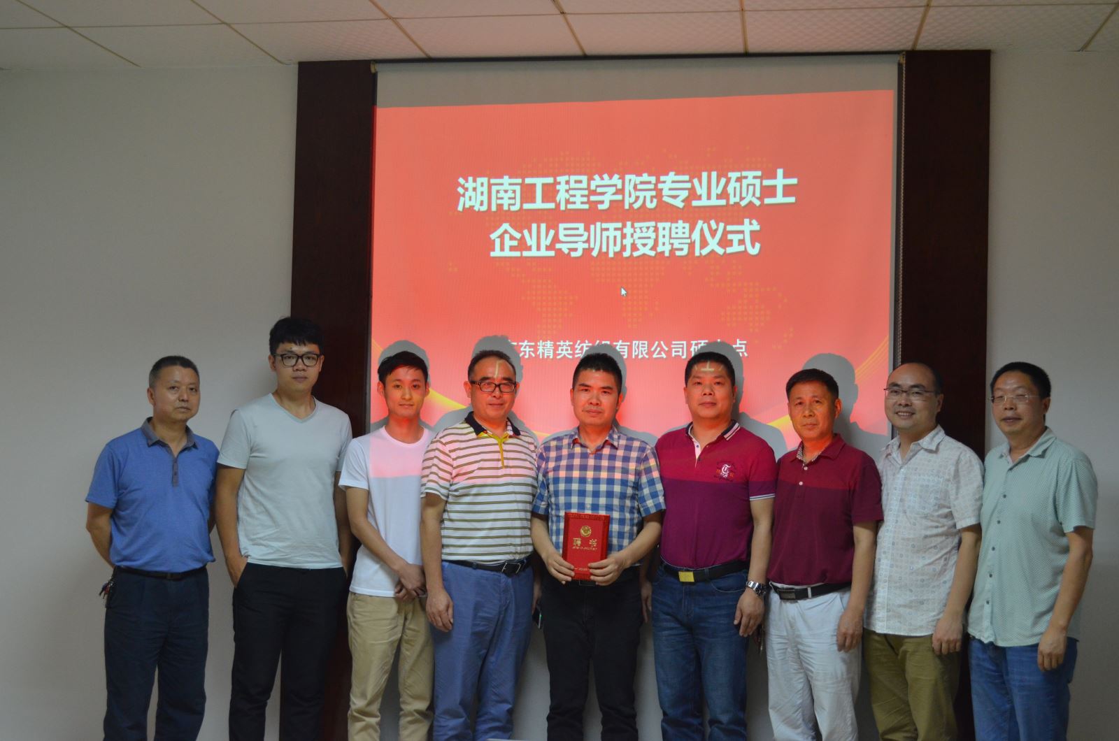 2017年5月19日,受学校委托,化学化工学院院长邓继勇、书记胡爱钦、轻化工程教研室主任陈镇及硕士生导师翦育林教授一行四人来到广东肇庆,代表37000dCm威尼斯研究生处向我校87届优秀校友——现广东精英纺织有限公司董事长彭太平先生颁发硕士导师聘书,正式聘请彭太平为我校纺织工程专业硕士研究生企业导师。