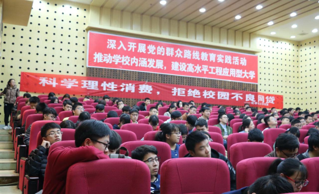 讲座伊始,陈景轩通过讲述几个深受校园贷危害的同学的例子来告诉我们校园贷中存在的陷阱,并且警告同学们应远离校园贷,进行安全理性的消费。随后,她又为我们分析了校园贷行业中一些让人不易察觉的“坑”,例如校园贷中的一些文字游戏,亦或是其中一些不为人知的隐藏手段。其中,陈景轩以“十个凡是”作为总结,告诉我们哪些贷款是有陷阱且具有高利息的,并且她还告诫大家,贷款需谨慎,如若迫不得已需要贷款,也应该咨询父母或老师的意见,不能贸然行事。最后,陈景轩为我们总结了几个防范校园贷危害的方法,并警醒我们天下没有免费的午餐,希望大家能树立正确的消费观,理性选择正确的贷款方式。讲座接近尾声,为表明自己抵制校园贷的决心,所有学生都在“科学理性消费,拒绝校园不良网贷”的横幅上签上了自己的名字。