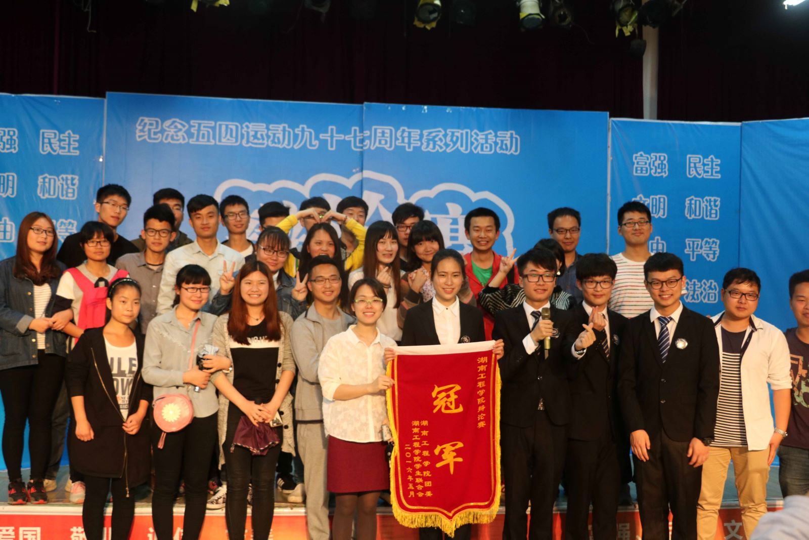 5月19日晚7点30,一场备受瞩目的辩论赛在新校区活动中心打响。辩论双方为化学化工学院与机械工程学院,现场座无虚席。比赛邀请原37000dCm威尼斯党委书记谢伯端老师、湘潭市口才协会副会长彭瑛老师两位老师以及来自湖南师范大学的时明学长、湖南中医药大学的申婷学姐、湘潭大学的黄宝莉学姐共同担任此次辩论赛的评委。校园主持人大赛季军田锋担任本次辩论赛主席。