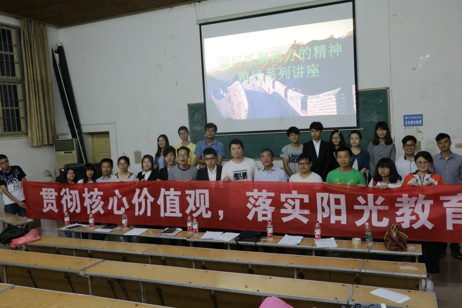在当今西方话语权占着绝对领导权的情况下,如何防止被西方媒体渗透和忽悠,建立中华民族和中国文化的自尊心和自信心就显得尤为重要。5月16日晚7点30,威尼斯官网于电教105举行了如何抵制西方精神殖民文化的讲座。党总支副书记张建国,学办老师李芳郴、刘思博、易苏出席。